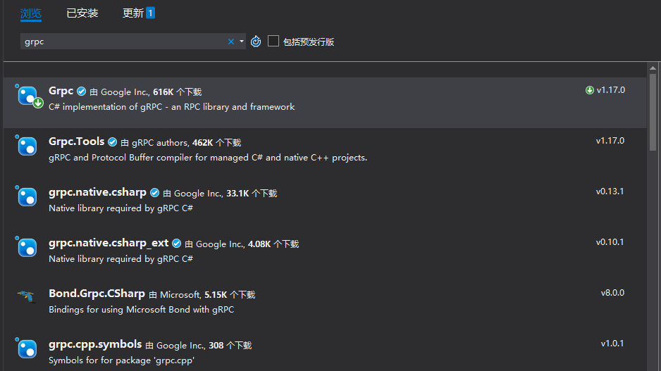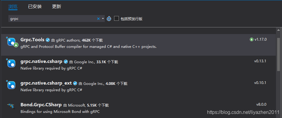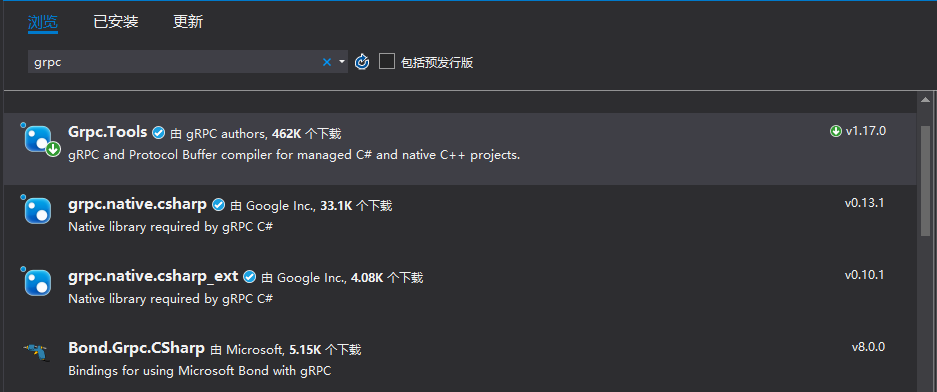 属性- 管理NuGet程序包 - 安装Grpc.Tools。