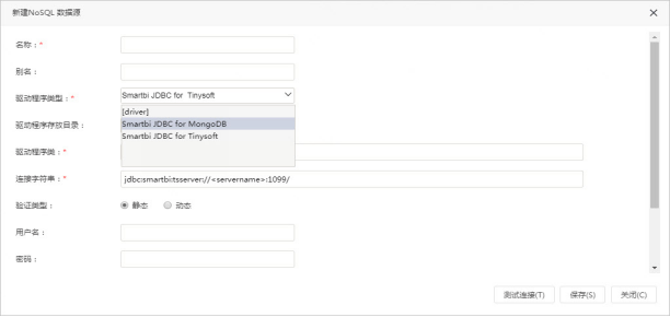 Spreadsheet支持创建Nosql数据源直接连接MongoDB和Tinysoft这两种非关系型数据库。