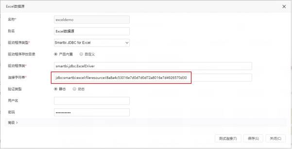 Spreadsheet支持创建Excel数据源,通过自行开发Smartbi JDBC for Excel驱动直接读取本地/服务器上的Excel文件作为数据来源,Excel文件支持存在多个sheet页数据,每个sheet页作为该数据源下的一张表进行存储。