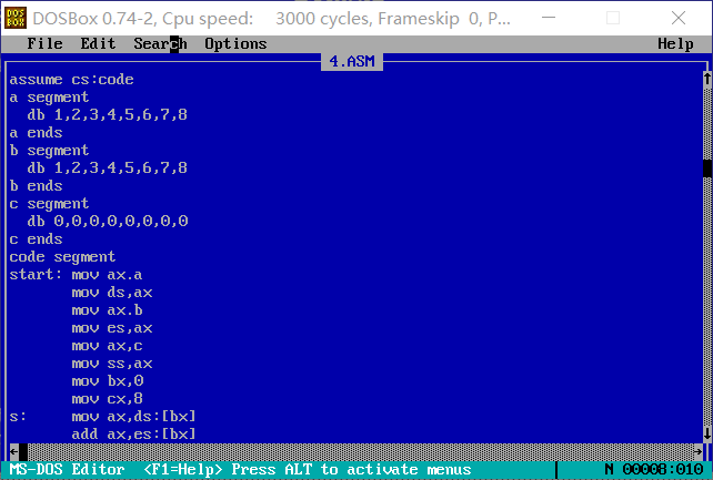 5.程序如下,编写code段中代码,将a段和b段中的数据依次相加,将结果存到C段中。