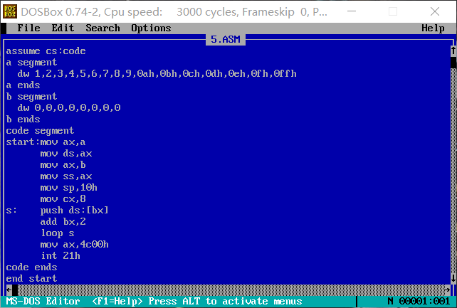 总结:这次实验做的不顺利,尤其是第5,6个实验。此次实验让我更加了解了段地址以及各种语言的运用,收获很大。