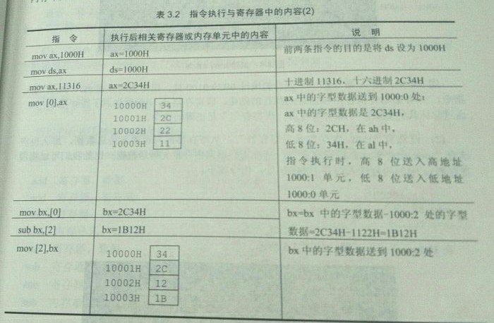 3.1 内存中字的存储:CPU中,用16位寄存起来存储一个字。高8位存放高位字节,低8位存放低位字节。在内存中存储时,由于内存单元是字节单元(一个单元存放一个字节),则一个字要用两个地址连续的内存单元来存放,这个字的低位字节存放在低地址单元中,高位字节存放在高地址单元中。