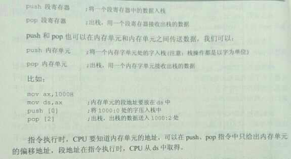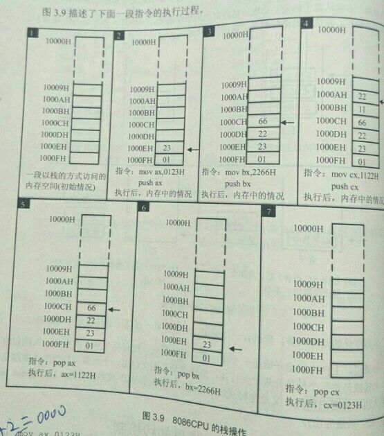 3.7 CPU提供的栈机制:8086CPU提供入栈和出栈指令,最基本的两个是PUSH(入栈)和POP(出栈)。