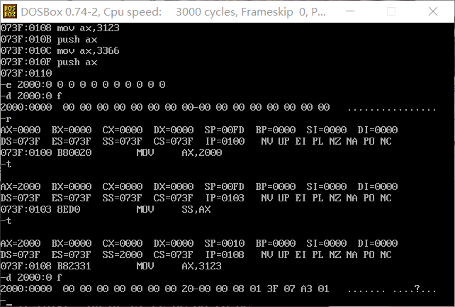 (2)仔细观察图3.19中的实验过程,然后分析:为什么2000:0~2000:F中的内容会发生改变