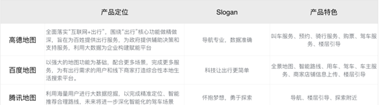 百度地图在Android市场排名第一,ios市场排名第二;高德地图在ios市场排名第1,在Android市场排名第二。腾讯地图在两个平台均排名第5。从产品定位角度来看三者功能内容。高德地图借助人工智能技术,进一步深化“互联网+出行”,拓展出行内容;深化“出行+“,在O2O方面做的更为完善,开始向人口应用方向发展。百度地图,也介入了很多O2O方面的业务,再观腾讯地图,围绕海量数据和精准导航开展其功能,增加街景地图,坚持“足不出户看天下”。