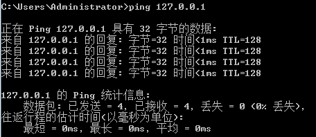 (1)ping 127.0.0.1 //测试本机TCP/IP协议安装是否正常