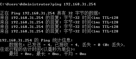 (3)ping 本网段内某个主机IP地址 //测试到对方主机是否连通