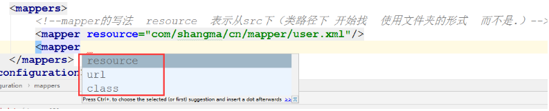 <mapper resource="com/shangma/cn/mapper/user.xml"/>