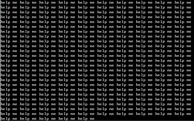 /* 循环打印字符 */ #include <stdio.h> int main() { while(1) printf("help me "); return 0; }