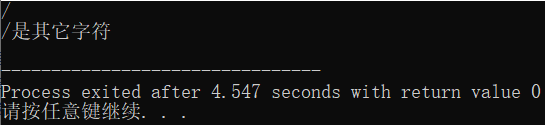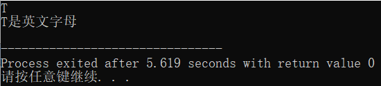 // ex4.cpp // 判断字符类型 #include <stdio.h> int main() { char x; x = getchar(); if(x>=48&&x<=57) // 判断x是数字字符表达式 printf("%c是数字字符\n", x); else if(x>=65&&x<=90||x>=97&&x<=122) // 判断x是大写或小写英文字母的表达式 printf("%c是英文字母\n", x); else printf("%c是其它字符\n", x); return 0; }
