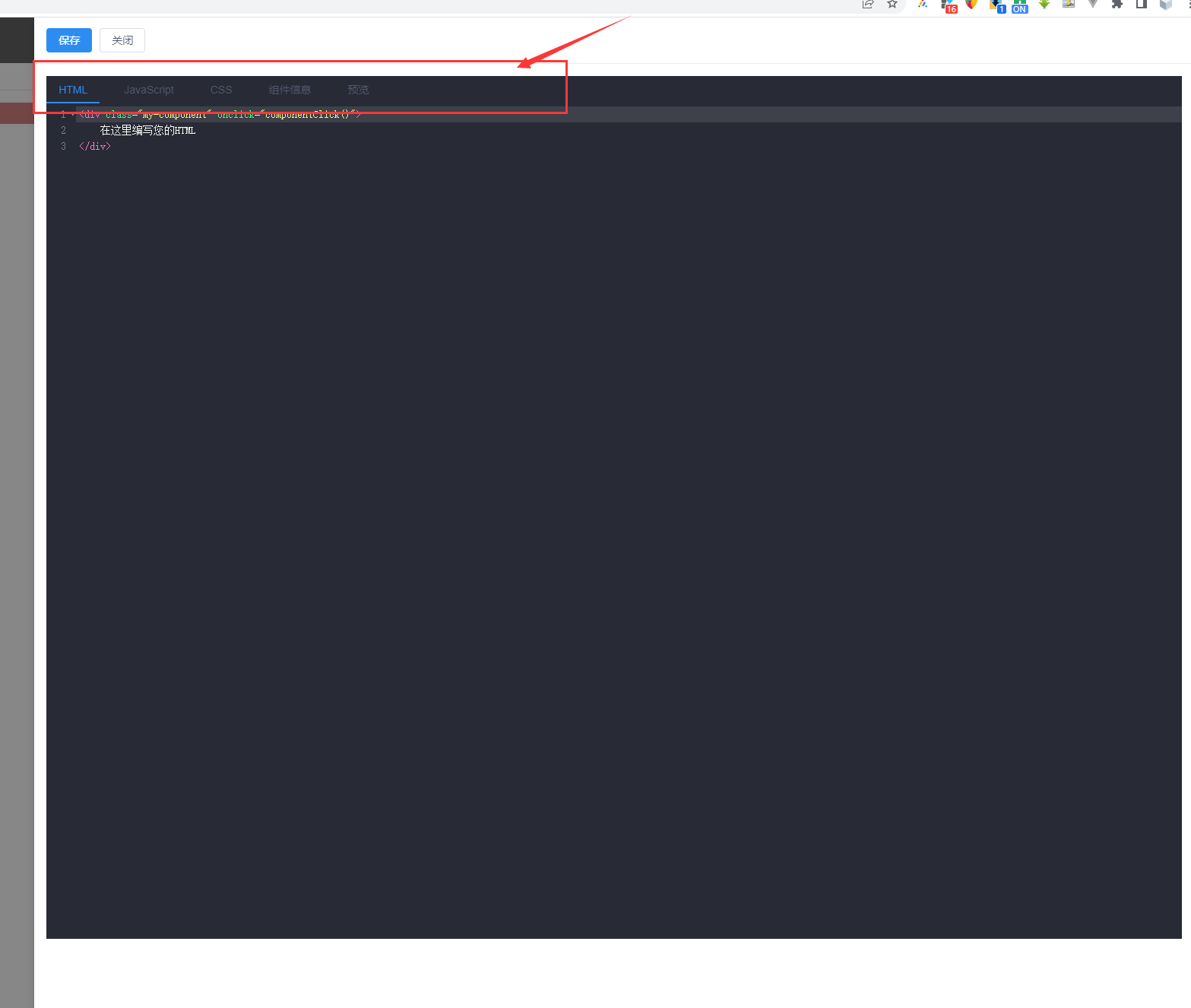 我们在已安装的列表中可以看到一个“开发”的按钮,点击后就有个组件开发编辑窗口,会一下web开发的同学都很容易搞定的,一看就明白了。