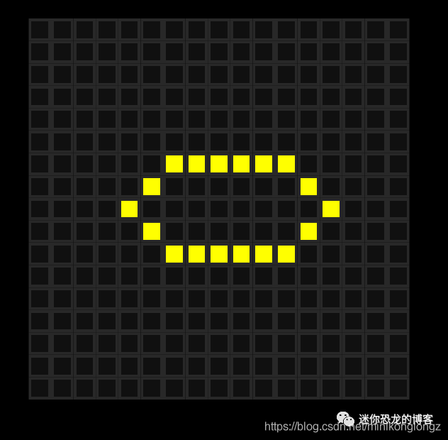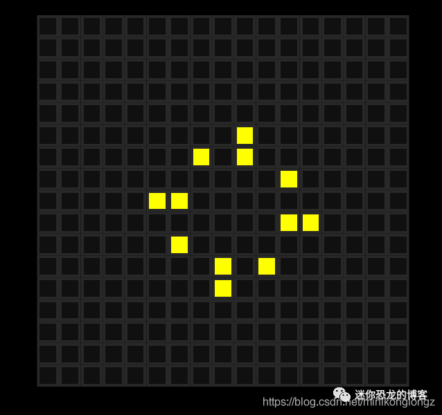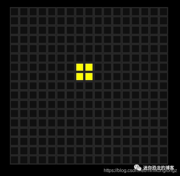 超炫酷吧,上面的格子就是一个个元胞,又可以叫细胞,黑色的代表死亡,黄色的代表存活,具体的生存规则如下: