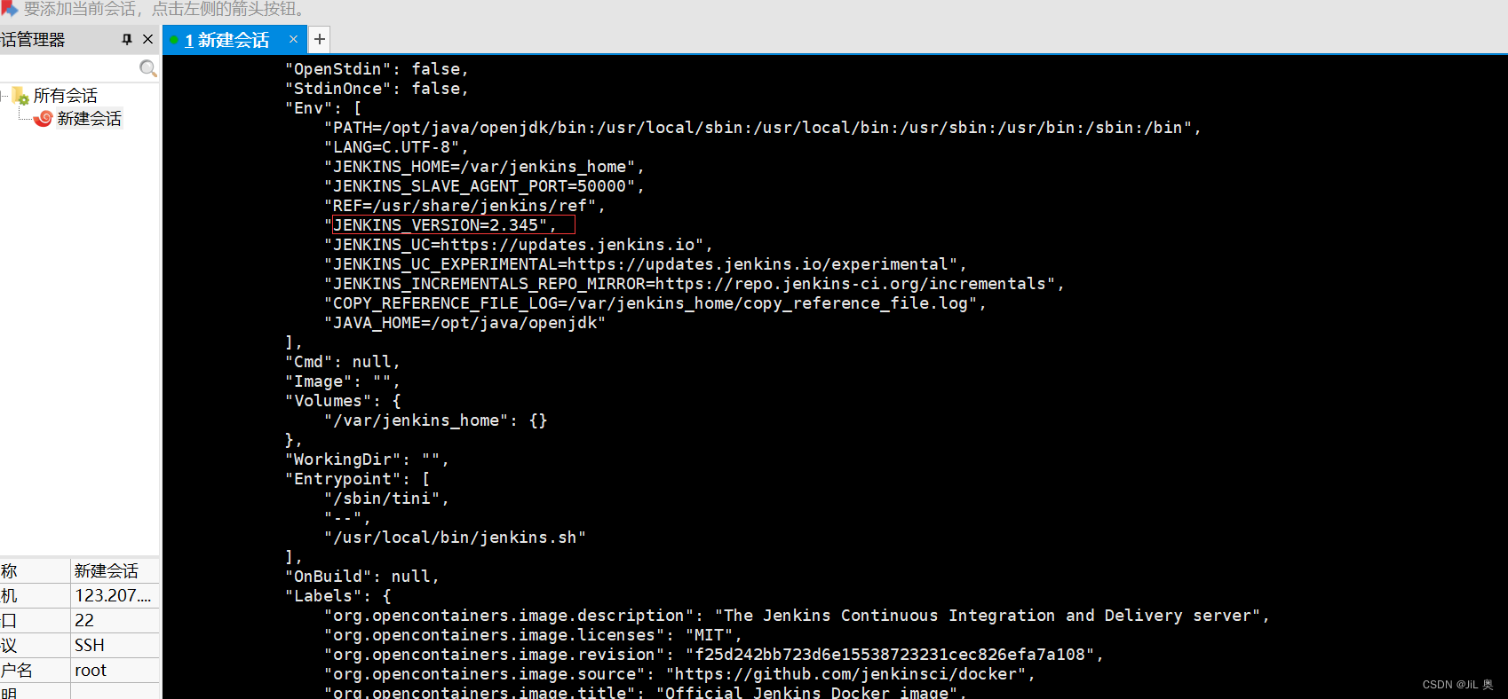 6,启动容器,尤其注意jenkins/jenkins:2.345一定要带版本号,不然就会去下载其它的jenkins版本来运行,导致后面出现问题