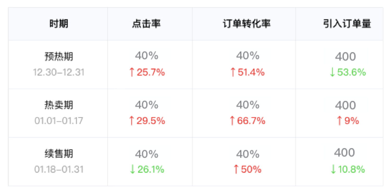 电商活动中经常会分时间节奏来进行不同的促销打法,常见的如预热/高潮/返场,如果有这样的分时期的策略,则可按时期进行数据拆解对比,找到某数据指标下显著高/低的时期。