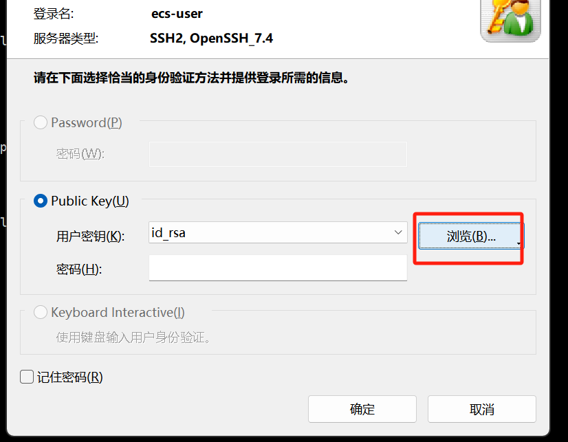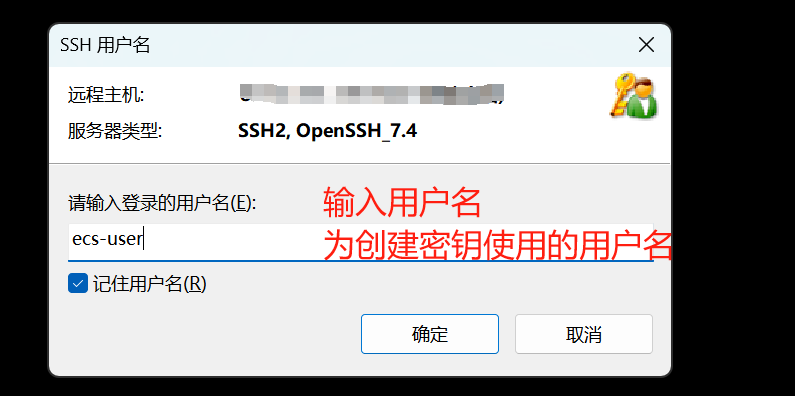 生成密钥方式和上面一致本次生成密钥使用的用户为阿里云默认用户ecs-user