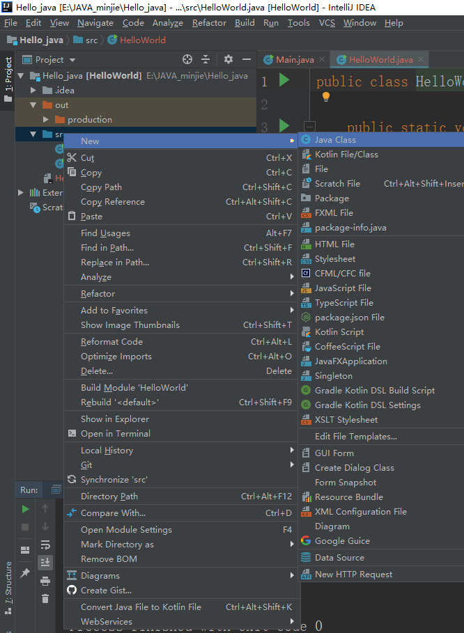 Idea使用:创建新工程,新工程的名字自己取,后面再src中自己新建一个java class文件