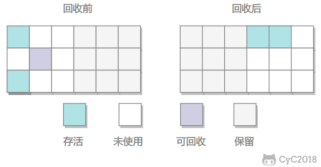 让所有存活的对象都向一端移动,然后直接清理掉端边界以外的内存。
