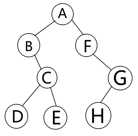 \(\color{red}{中序序列}\):BDCE A FHG (左根右)