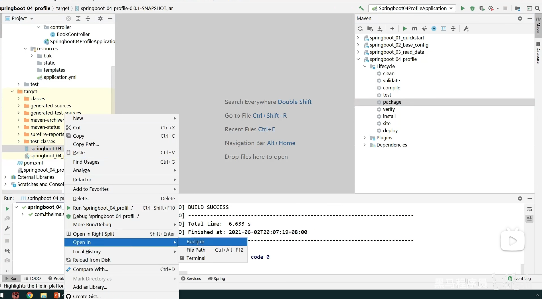 - 静态资源(html,css)和首页都写到main->resources->static下