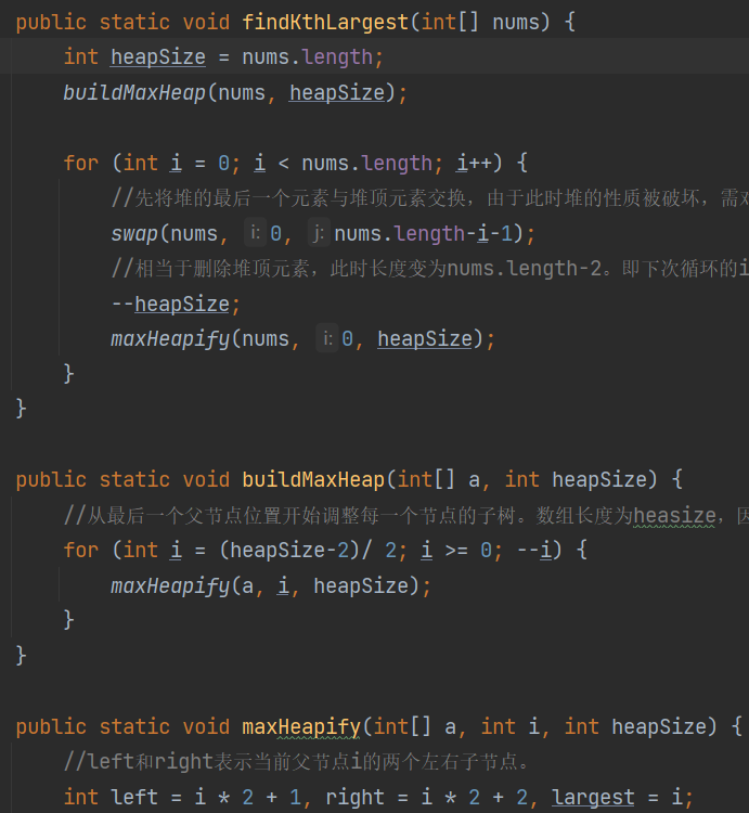 - 0堆排序:所有元素先形成大根堆,之后每轮将堆顶元素与最小叶子结点交换并重新排序,执行n轮。