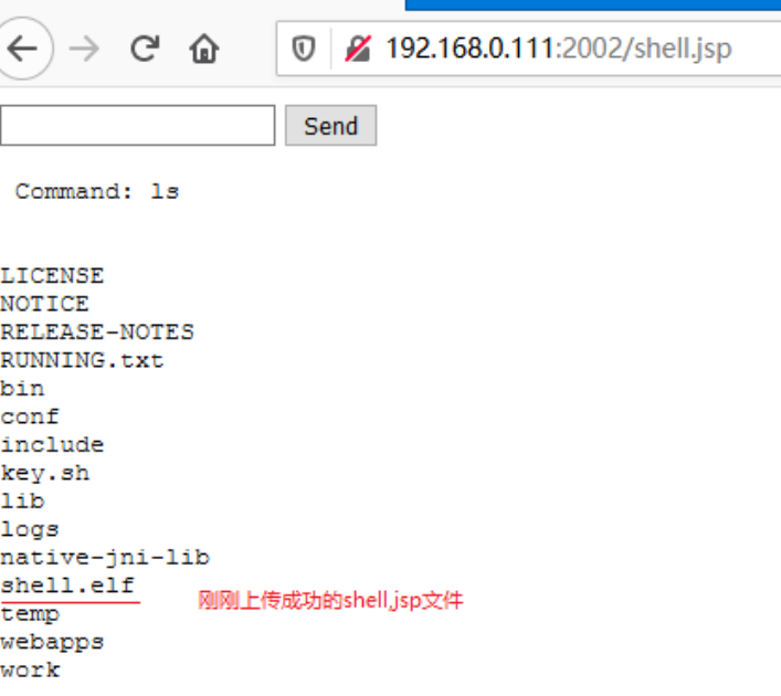上传成功,访问http://192.168.0.111:2002/shell.jsp: