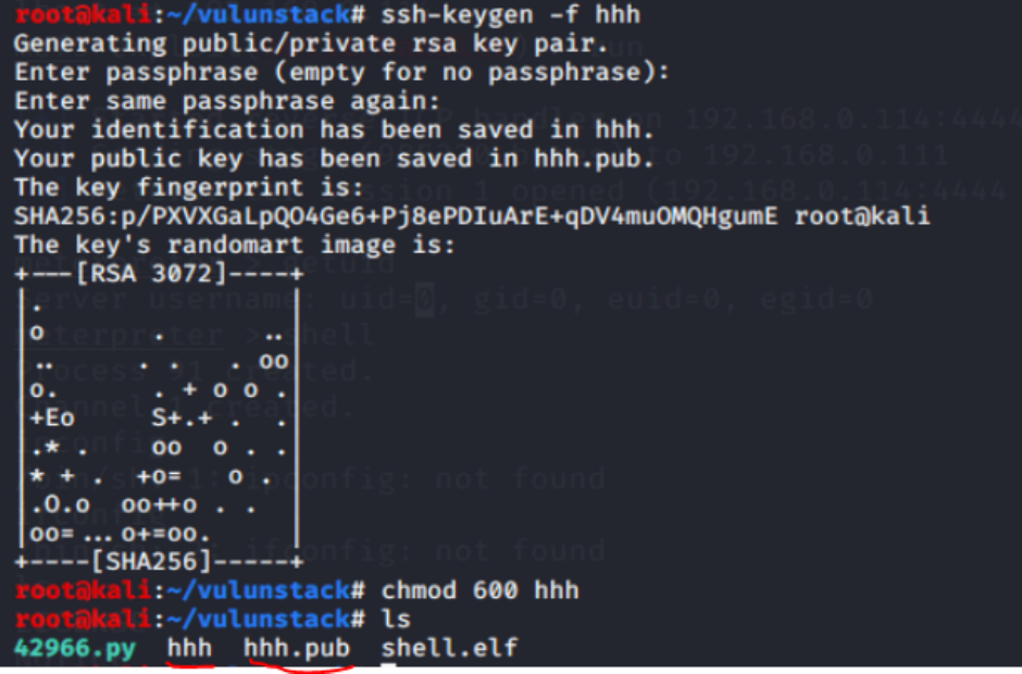 即在攻击机当前目录/root/vulunstack下生成了一个shell.elf木马文件