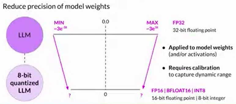 Quantization: post training quantization transforms a model's weights to a lower precision representation, such as a 16-bit floating point or eight-bit integer. This reduces the memory footprint of your model.