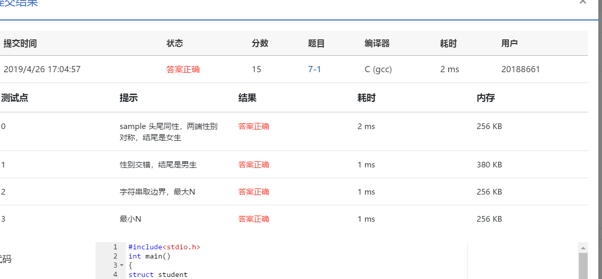 其中p是指向学生信息的结构体数组的指针,该结构体的定义为: