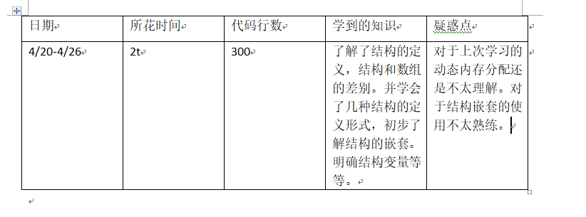 本周学习了有关结构的知识,希望自己认真听,刚刚开始学习,不要走神,多学习,多练,多预习,不怕难。