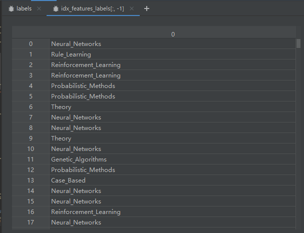该数据集总共有2708个样本,而且每个样本都为一篇论文。根据README可知,所有的论文被分为了7个类别,分别为: