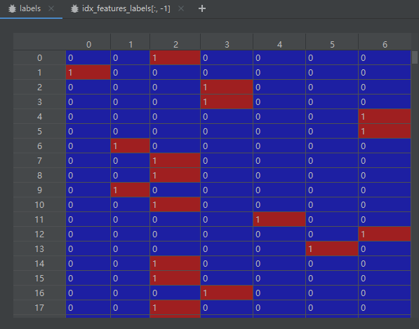 在很多的多分类问题中,特征的标签通常都是不连续的内容(如本文中特征是离散的字符串类型),为了便于后续的计算、处理,需要将所有的标签进行提取,并将标签映射到一个独热码向量中。