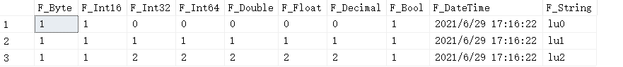 List<TestEntity> entities = new List<TestEntity>(); for (int i = 0; i < 10; i++) { entities.Add(new TestEntity() { F_Byte = 1, F_Int16 = 1, F_Int32 = i, F_Int64 = i, F_Double = i, F_Float = i, F_Decimal = i, F_Bool = true, F_DateTime = DateTime.Now, F_String = "lu" + i.ToString() }); } dbContext.BulkInsert(entities); dbContext.Update(entities);