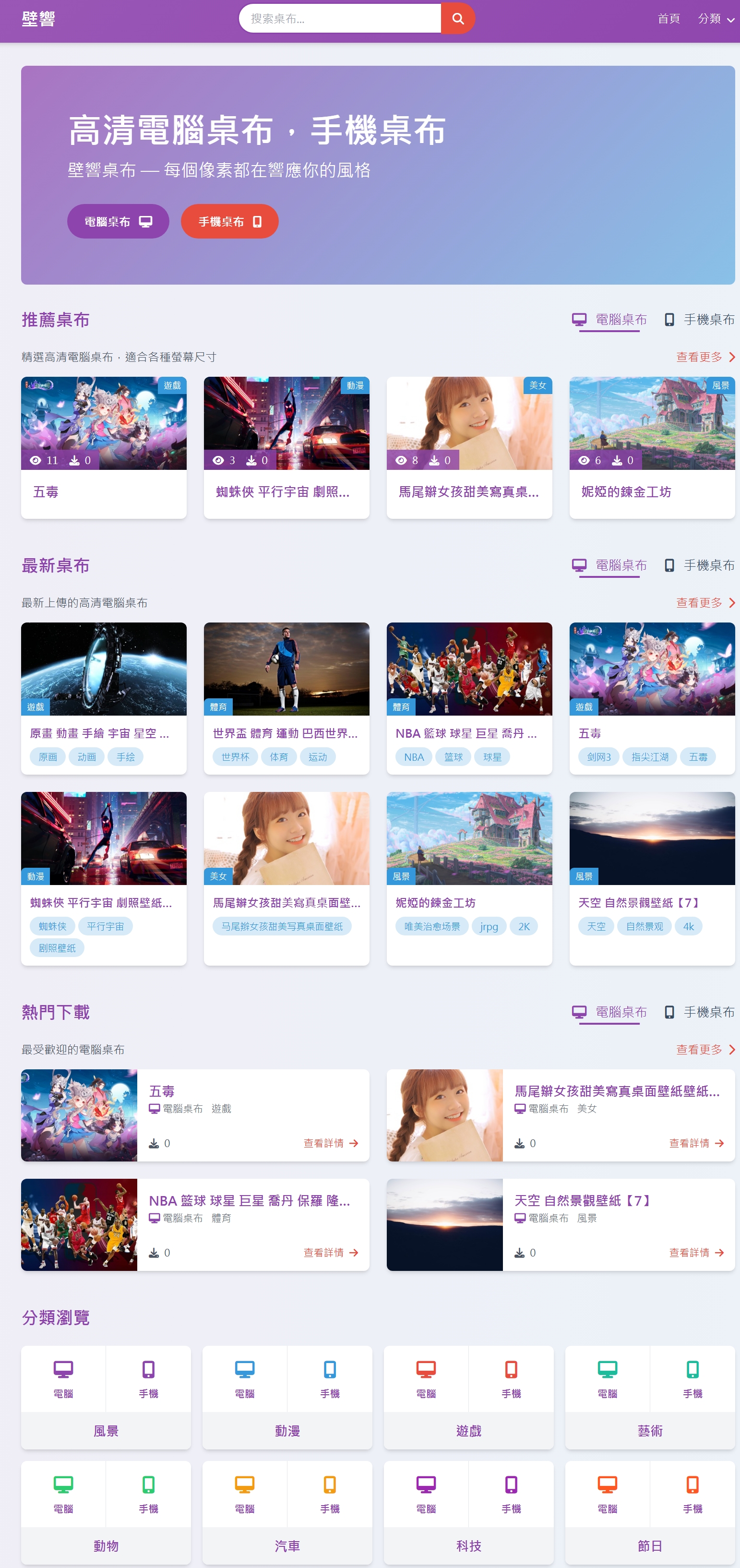目前,正在开发一个图片网站,网站做了响应式设计 在线预览 地址 電腦桌布 手機桌布 - 壁響 ,