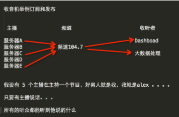 import redis class RedisHelper: def __init__(self): self.__conn = redis.Redis(host='127.0.0.1',port=6379) self.chan_pub = 'fm97.8' #发布信息的频道名 self.chan_sub = 'fm97.8' #订阅信息的频道名 def public(self, msg): self.__conn.publish(self.chan_pub, msg) #向发布频道发布消息 return True def subscribe(self): pub = self.__conn.pubsub() #拿到pub对象 pub.subscribe(self.chan_sub) #向订阅频道请求消息 pub.parse_response() #解析响应的信息 return pub