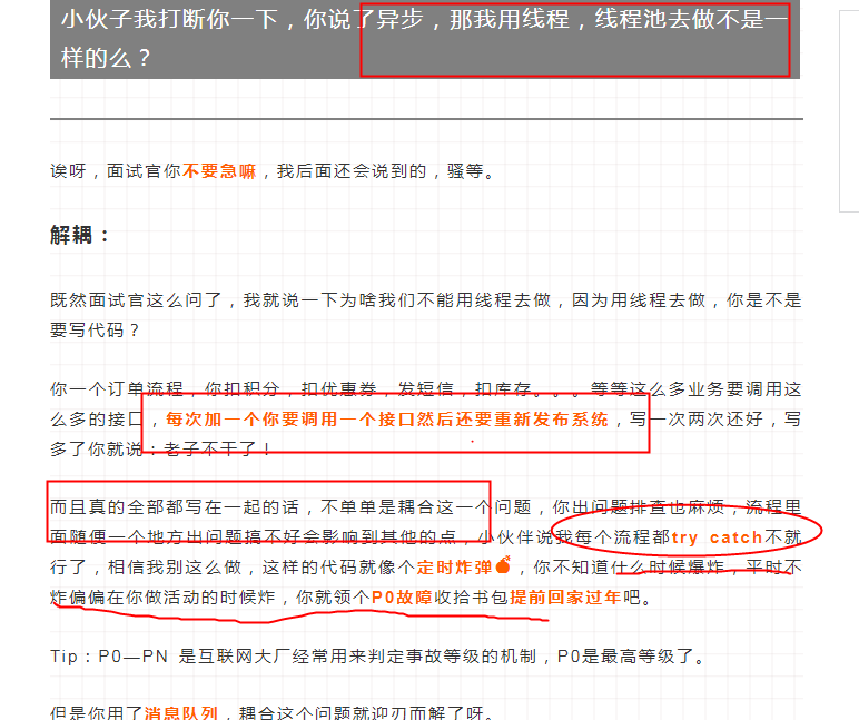 每次添加一个后续业务接口,你都需要调用调用一个接口然后重新发布系统,并且写在一起耦合性高,排查问题麻烦,所以和线程相比的话,mq的异步处理能更好的解耦