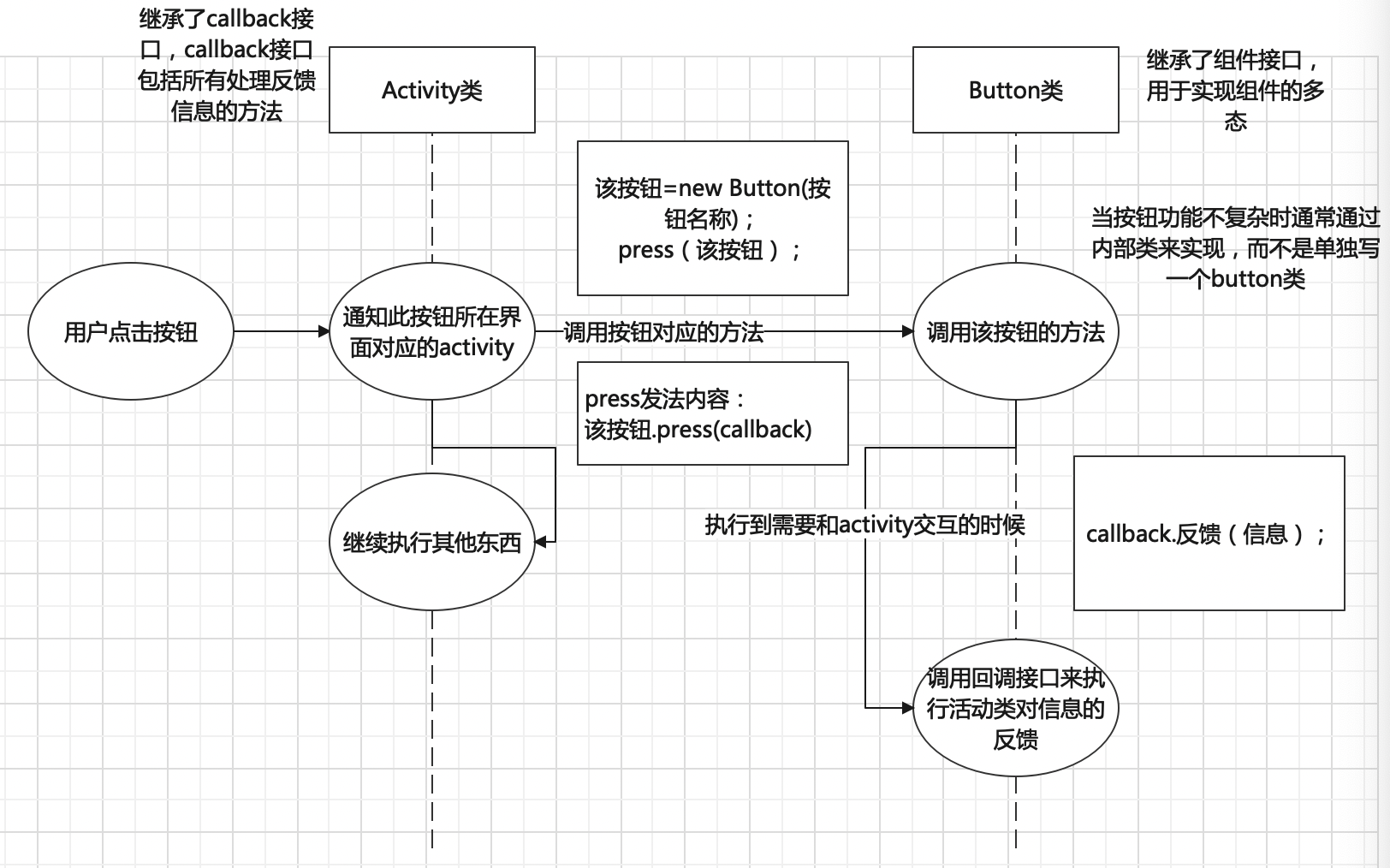 回馈信息的处理或者其他操作的代码实现在activity类但是执行是在button的线程,这样两个线程互不影响。