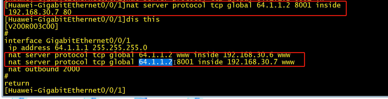 nat server protocol tcp global 64.1.1.2 80 inside 192.168.30.6 80
