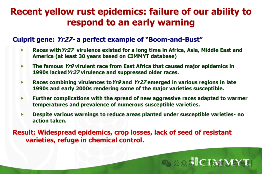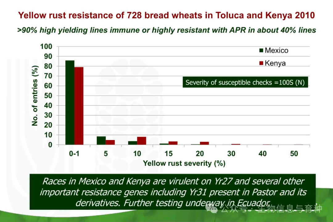 这则报告主要介绍了CIMMYT(国际玉米小麦改良中心)在小麦育种方面的策略和方法,特别是针对黄锈病(Yellow Rust)的抗性育种。以下是报告的主要内容总结: