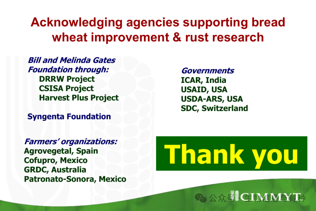 报告主题:CIMMYT小麦育种策略与抗锈病研究