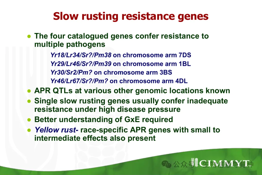- • 多个基因(如Yr18/Lr34、Yr29/Lr46等)具有多病原抗性,位于不同染色体上。