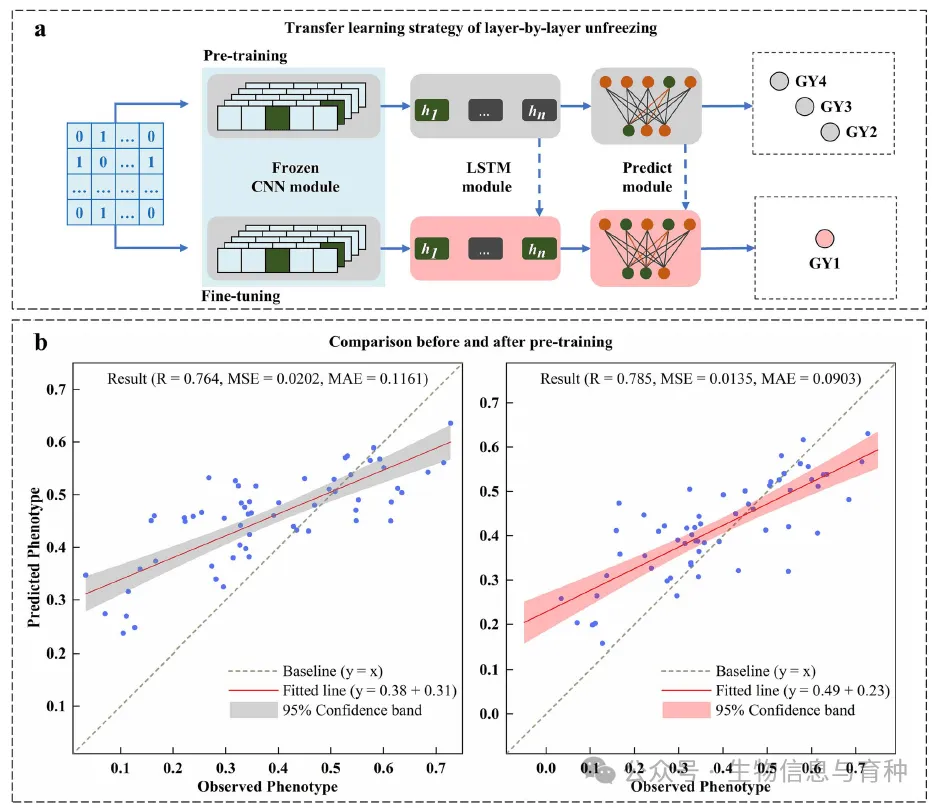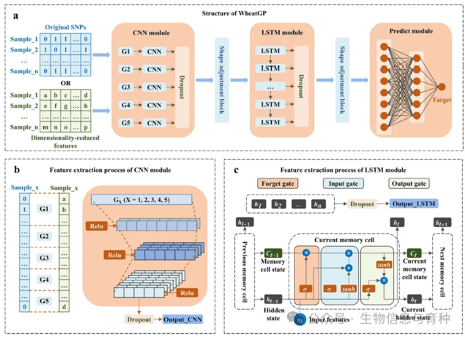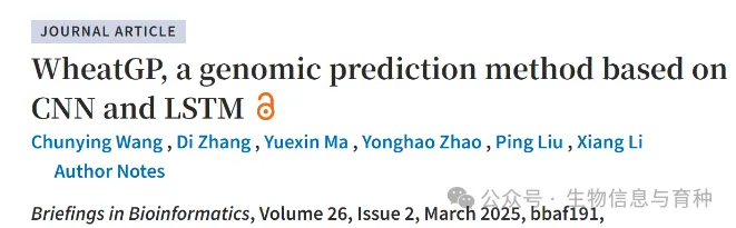2025年4月,山东农业大学智农AI科技创新团队在TOP期刊《Briefings in Bioinformatics》发表了题为WheatGP, a genomic prediction method based on CNN and LSTM的研究论文。研究团队基于卷积神经网络(CNN)和长短期记忆神经网络(LSTM)提出了一种小麦基因组预测方法(WheatGP),利用了多层CNN捕获基因组序列中的短程依赖性和LSTM独特的门控机制,提取并保留基因位点之间长距离的依赖关系。