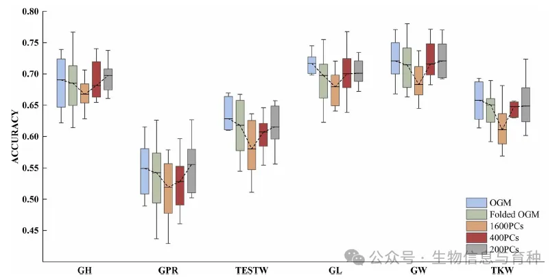 - • 输入维度的影响:实验表明,使用主成分分析(PCA)降维后的特征作为输入,WheatGP能够实现与原始基因型矩阵相当的预测准确性,同时提高了训练速度。