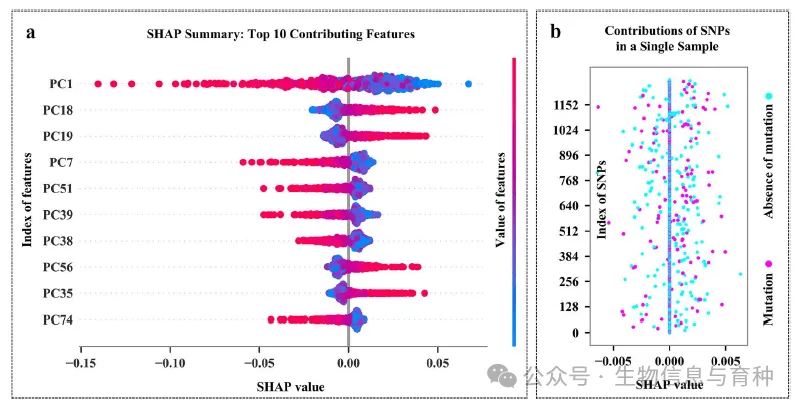 - • 模型解释性:通过SHAP(SHapley Additive exPlanations)分析,可以量化特征对模型预测的贡献,揭示特征重要性的分布模式,为后续的特征选择、模型改进和生物学意义探索提供明确方向。