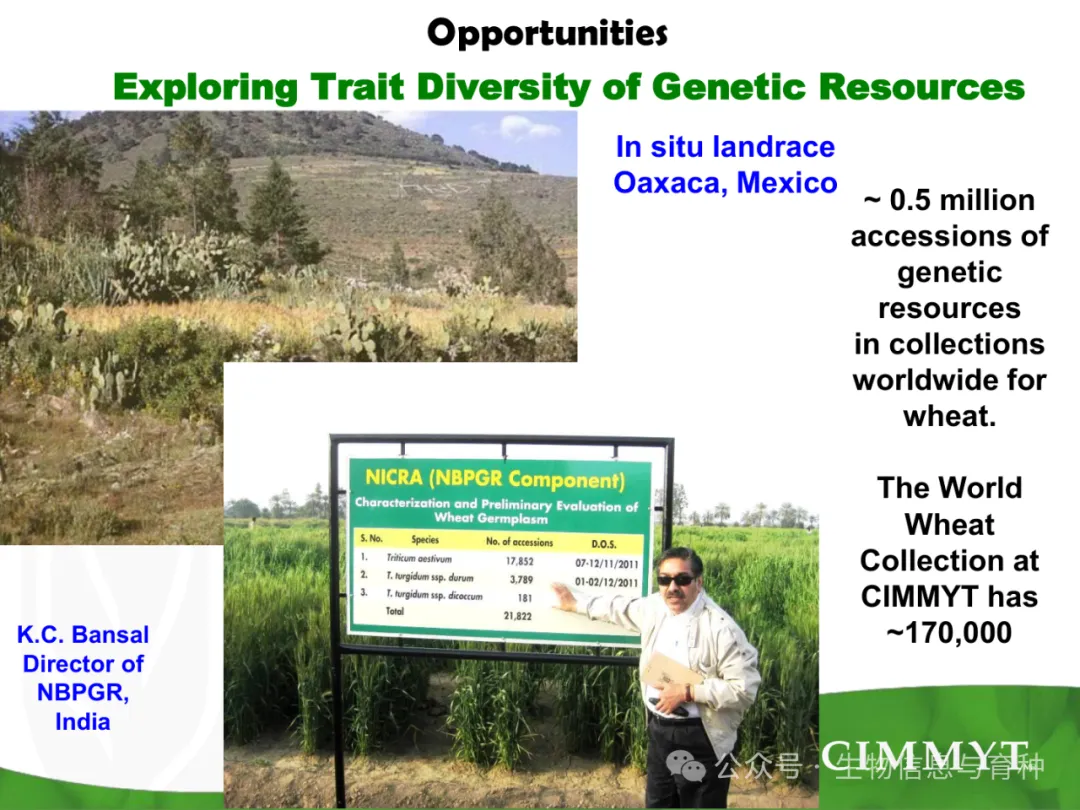 - • 遗传资源的多样性:全球有约50万份小麦遗传资源,CIMMYT的小麦收藏中有约17万份。