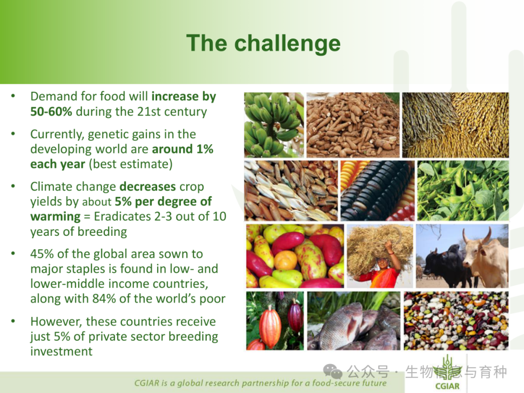 - • 资源分配不均:全球 45% 的主要粮食作物种植面积位于低收入和中低收入国家,这些国家有 84% 的贫困人口,但仅获得 5% 的私营部门育种投资。