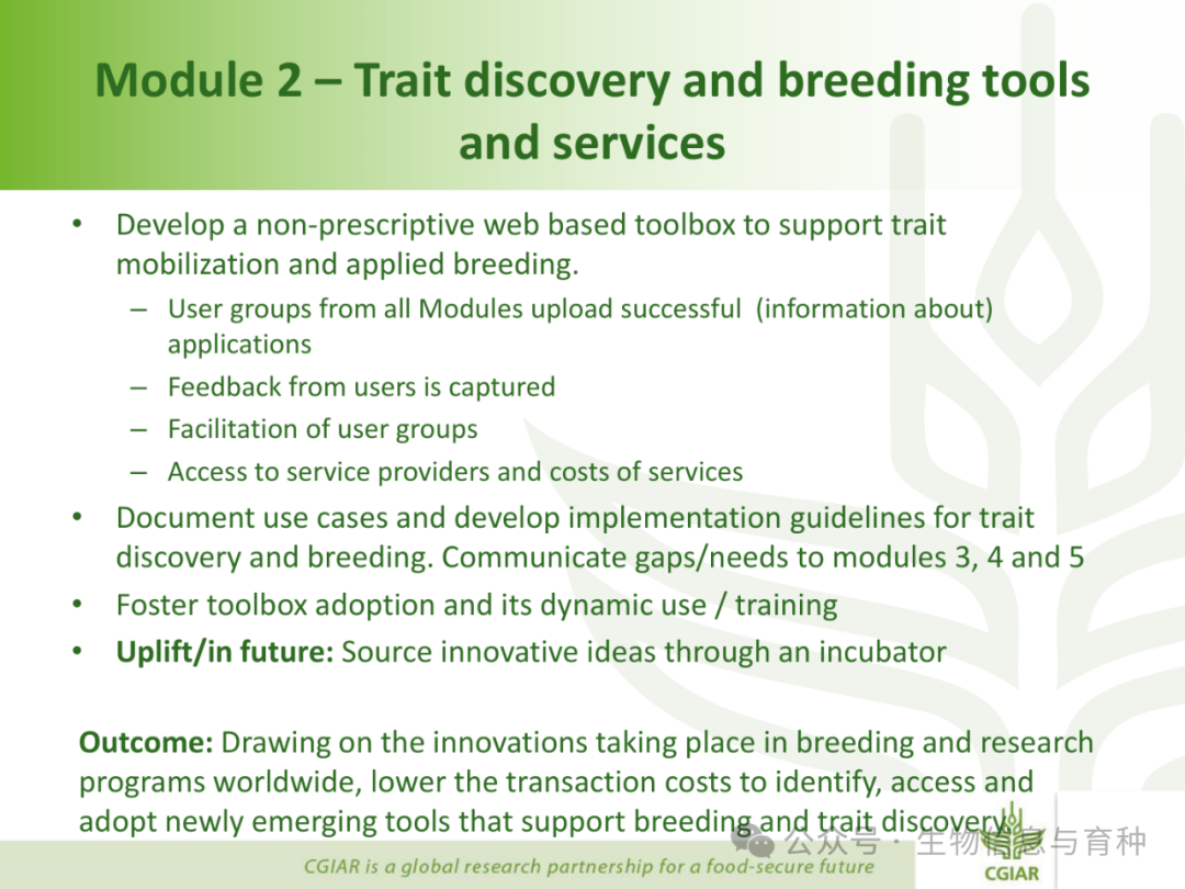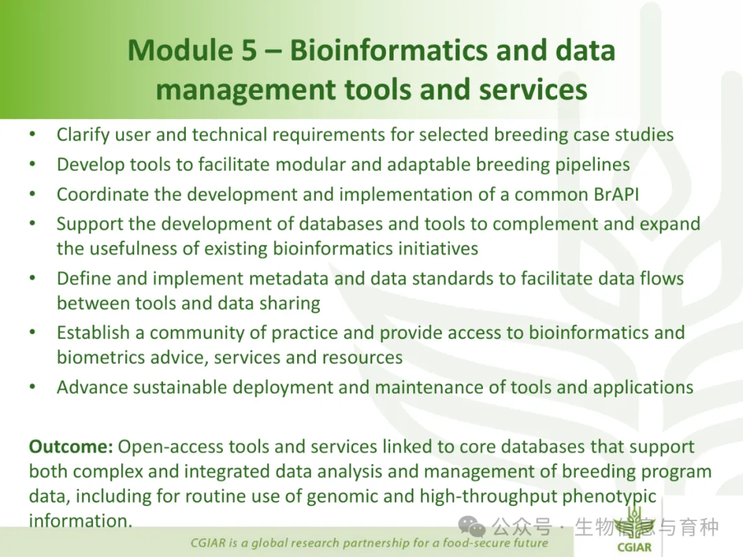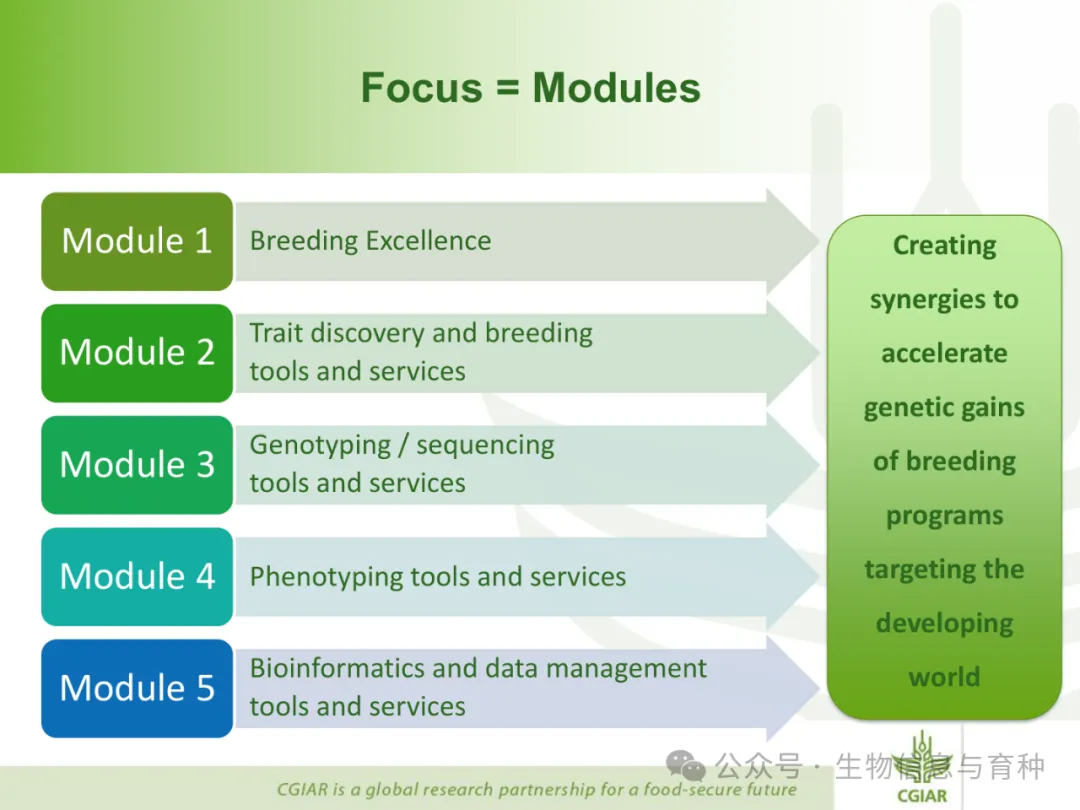 CGIAR 育种卓越平台由五个模块组成,每个模块专注于不同的工具和服务:
