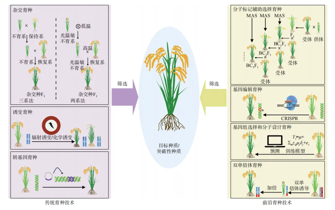 水稻(Oryza sativa L.)作为全球最重要的粮食作物之一,养育了世界上超过1/2的人口,尤其在亚洲地区更是主食的核心来源。其产量和品质直接关系到全球粮食安全和人类生存发展。需求不断提升,给水稻生产带来了前所未有的挑战。传统育种技术在应对当前和未来的挑战时,逐渐显现出自身的局限性。近年来,随着分子生物学、基因组学和生物信息学等学科的迅猛发展,一系列新兴的前沿育种技术应运而生,这些前沿技术为水稻育种提供了更加精准、高效的手段,有望突破传统育种的瓶颈,显著提升育种效率和精准度。