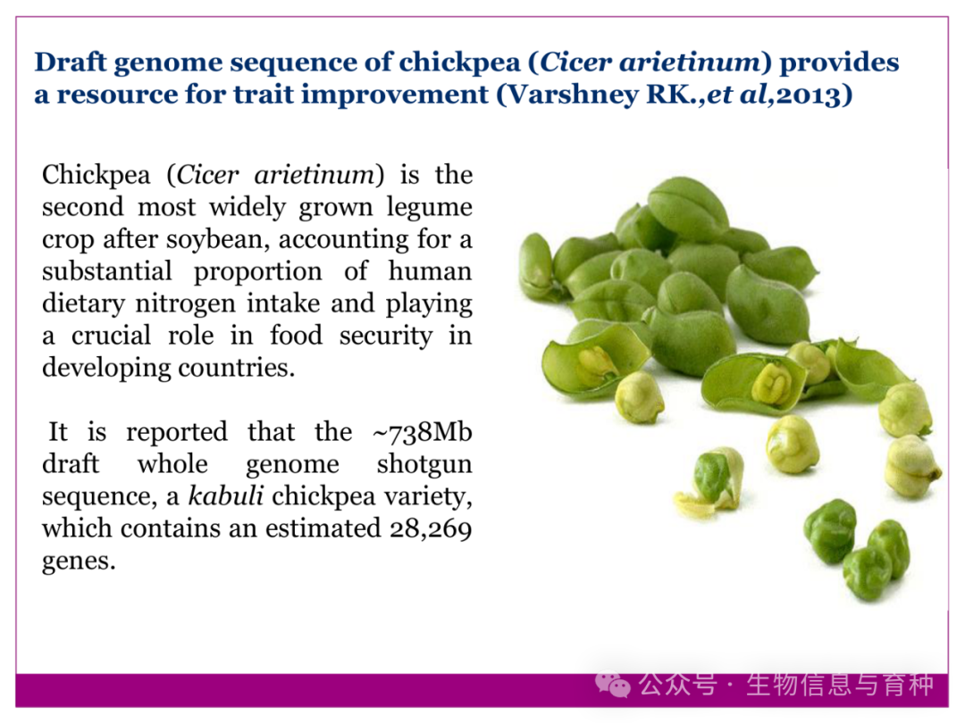 - • 鹰嘴豆:发布 738 Mb 草图基因组,28 269 个基因;重测序 29 个品系,揭示 desi 与 kabuli 类群驯化与选择信号。