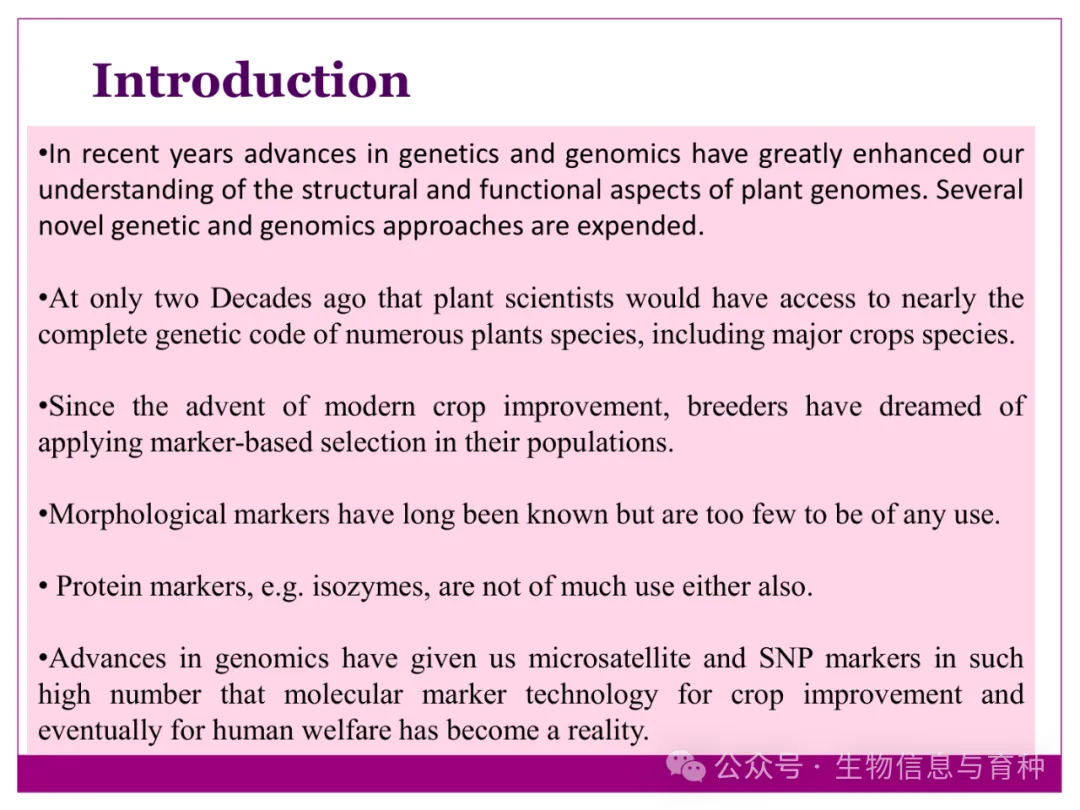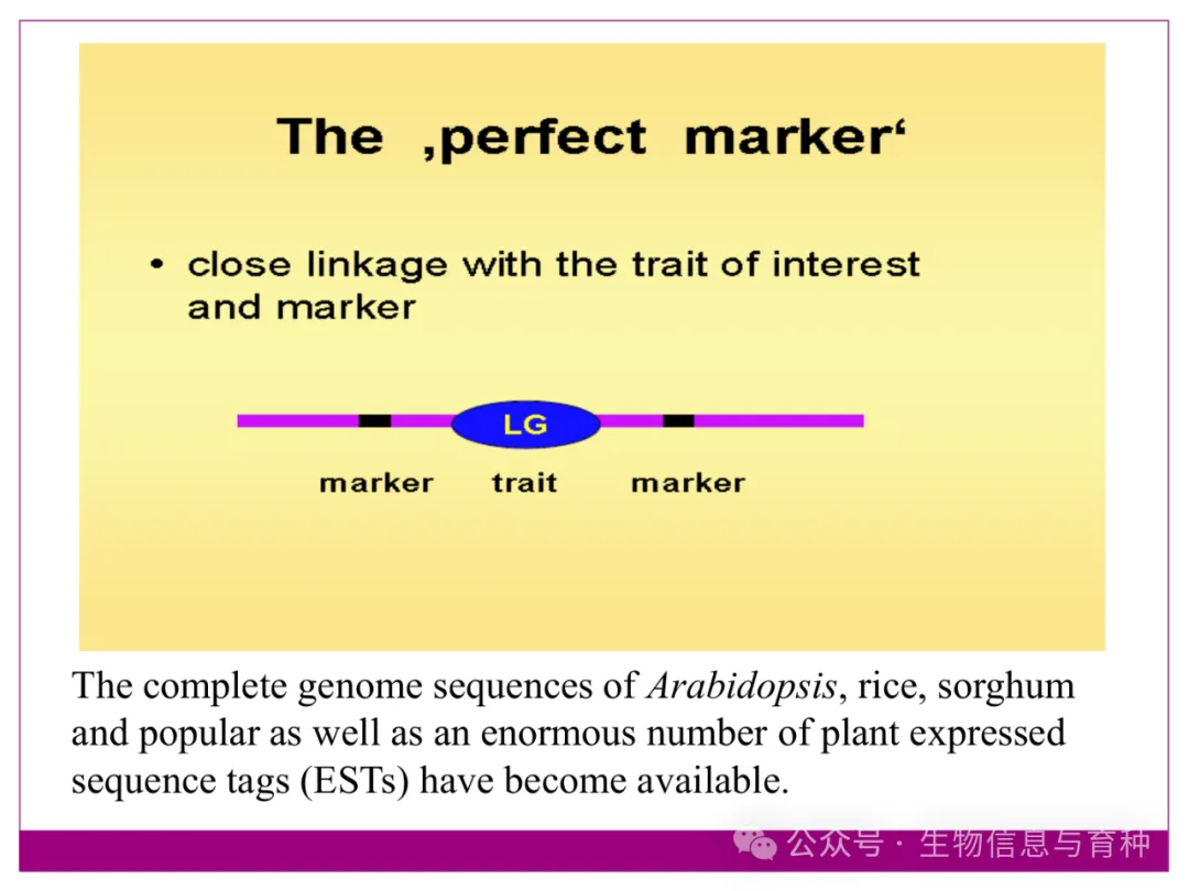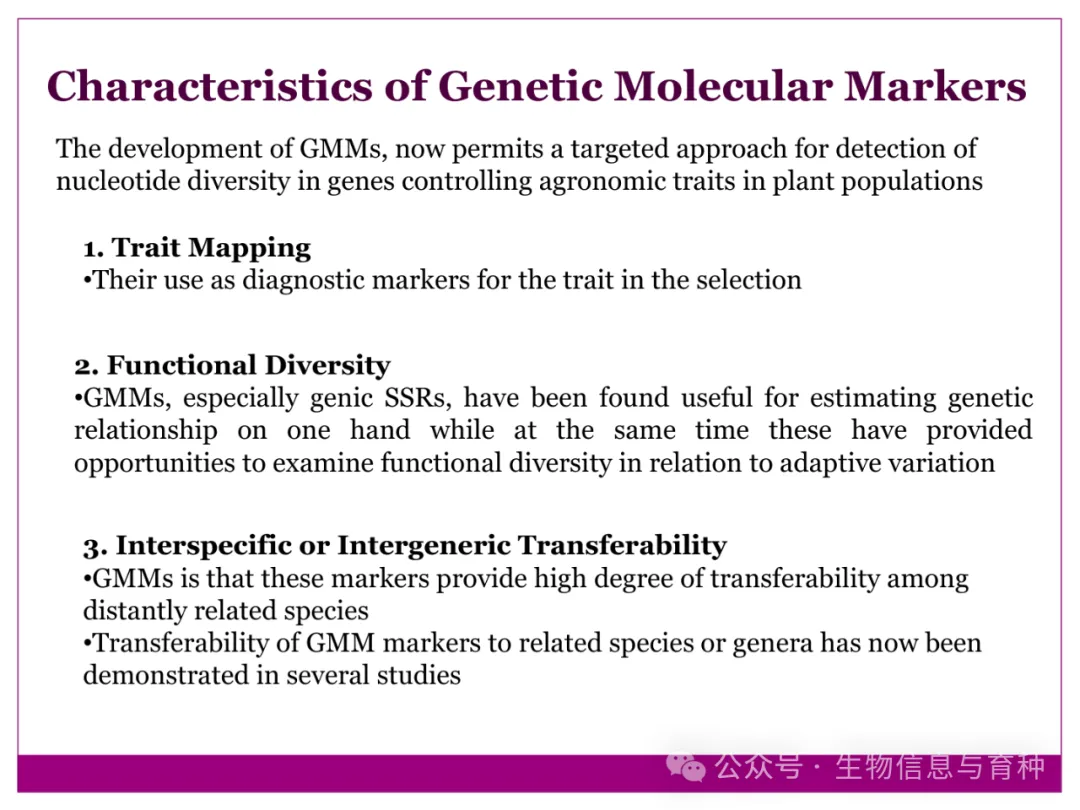 - 3. 高密度共显性标记(SNP/SSR)已取代形态、蛋白标记成为主流。