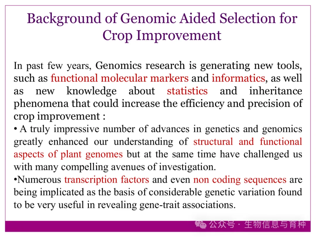 - 5. 基因组选择(GWS)可一次性利用全基因组标记,显著提高低遗传力性状的改良效率。